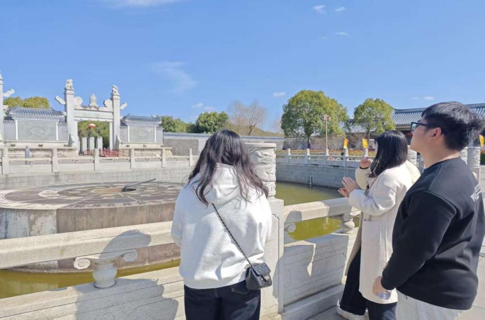 “五洲客家音,四海桑梓情”,習近平總書記在世界客屬懇親大會上高度概括了客家特質。石壁客家祖地作為全球客家人的“精神家園”,承載千年積淀,現有木活字印刷所、祭祀廣場等遺存。實踐隊走進寧化石壁客家祖地,為日月池的風水巧思吸引:池體映月屬陰、石板喻日屬陽,詮釋“天人合一”,五色石圓盤刻天干地支,中心清水漫出寓意文脈綿延。這種將天文歷法、哲學思想融入建筑的巧思,生動詮釋了客家文化的深厚底蘊。